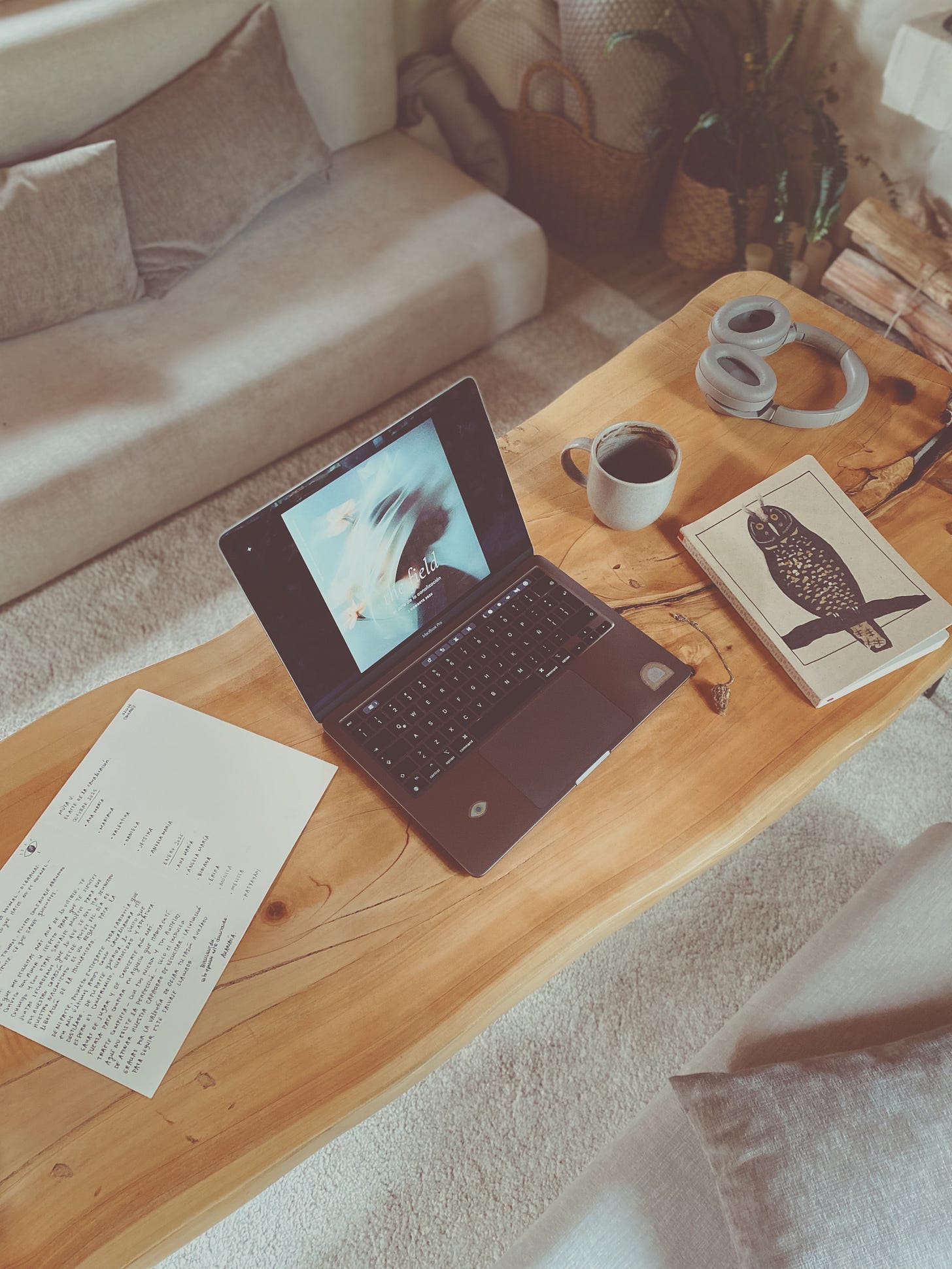 Estoy a punto de abrir el telegram que acogerá a las mujeres del primer grupo de estudio del registro akáshico. Digo - estoy a punto - porque tengo encima de la mesa de mi sala mi nueva agenda con un gran buho de portada, una taza de cacao con café esta vez, las cartas del oráculo reposando sobre el papel que elegí para escribir el llamado que llegó hasta la psique de cada una de las mujeres que hoy conforman tanto el primer, como el segundo grupo de enero del dos mil veintiséis.
